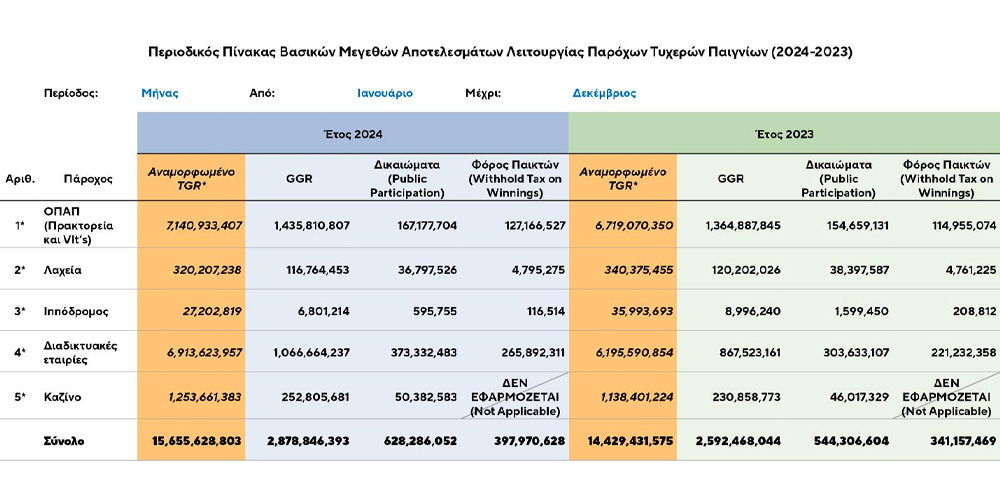 Ξεπέρασαν τα 15 δισεκατομμύρια ευρώ στα πονταρίσματα των Ελλήνων παικτών από τον Ιανουάριο του 2024 ως τον Δεκέμβριο του ίδιου έτους, σύμφωνα με τα έγκυρα στοιχεία που δημοσίευσε η ΕΕΕΠ.