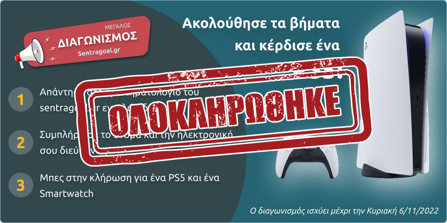 Το μεσημέρι της Τρίτης (14:00, 8/11) πραγματοποιήθηκε η κλήρωση για τον διαγωνισμό του Sentragoal, από τον οποίο προέκυψε ο σούπερ νικητής του Playstation 5 και του Smartwatch.