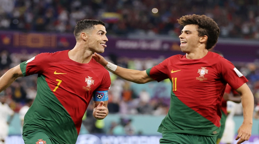Στο 65΄ οι Πορτογάλοι κέρδισαν πέναλτι, σε μαρκάρισμα του Σαλισού στον Ρονάλντο, μέσα στη μεγάλη περιοχή. Παρά τις διαμαρτυρίες των Γκανέζων, ο Πορτογάλος σούπερ σταρ εκτέλεσε εύστοχα και άνοιξε το σκορ. Έγινε, μάλιστα, ο πρώτος παίκτης που σκόραρε σε πέντε διαφορετικά Μουντιάλ. Στο 73΄ μετά από εξαιρετική προσπάθεια και γύρισμα του Κουντούς από αριστερά, ο Αγιού ισοφάρισε σε 1-1.