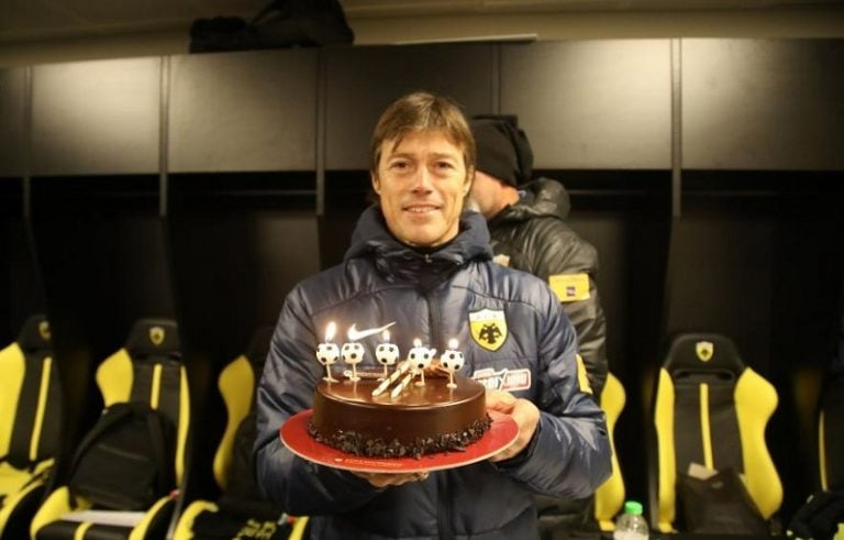 Οι ποδοσφαιριστές της ΑΕΚ, μετά την εντός έδρας νίκη τους με 3-0 επί της Λαμίας, υποδέχτηκαν στα αποδυτήρια με τούρτα τον Αργεντινό τεχνικό, που έχει τα γενέθλια του σήμερα και κλείνει τα 49 του χρόνια.
