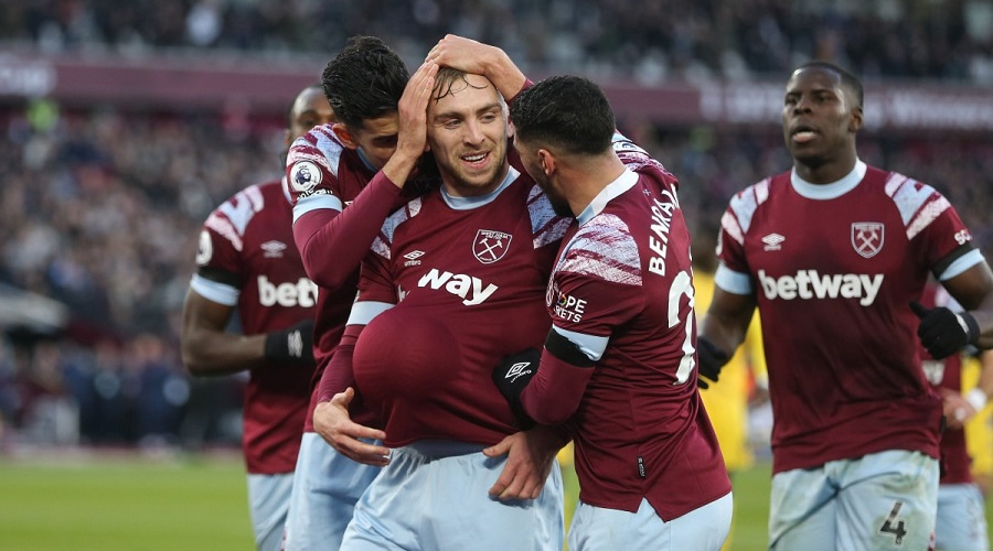 Τα «σφυριά» ήταν ανώτερα από το ξεκίνημα της αναμέτρησης και είδαν την υπεροχή τους να κεφαλαιοποιείται στο 34ο λεπτό, όταν ο Μπόουεν έκανε το 1-0 από κοντά, νικώντας τον Πίκφορντ.
