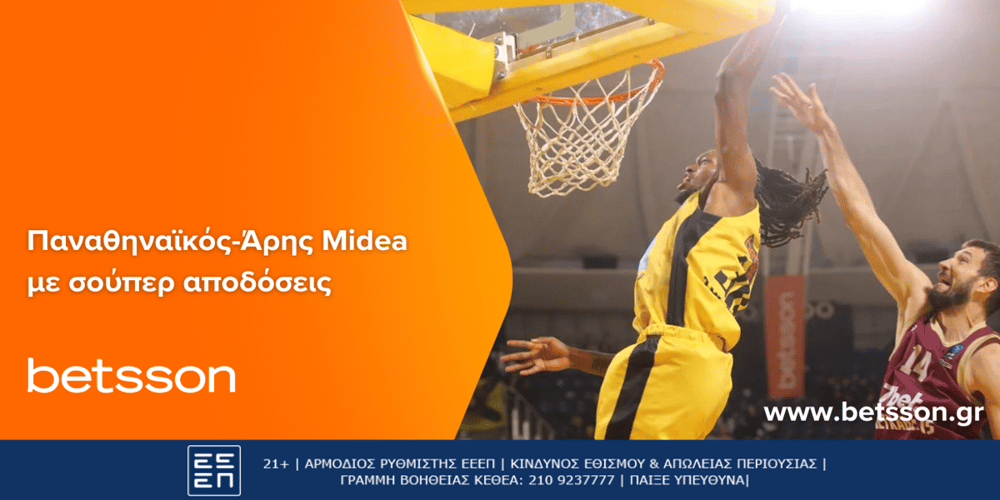 Ο άσος του Παναθηναϊκού με χάντικαπ 17,5 πόντων προσφέρεται στο 1,90** και το διπλό του Άρη Midea φτάνει στο 9,35** στην πλατφόρμα της Betsson. Να σημειώσουμε ότι η Betsson είναι χρυσή χορηγός της ομάδας μπάσκετ του Άρη.
