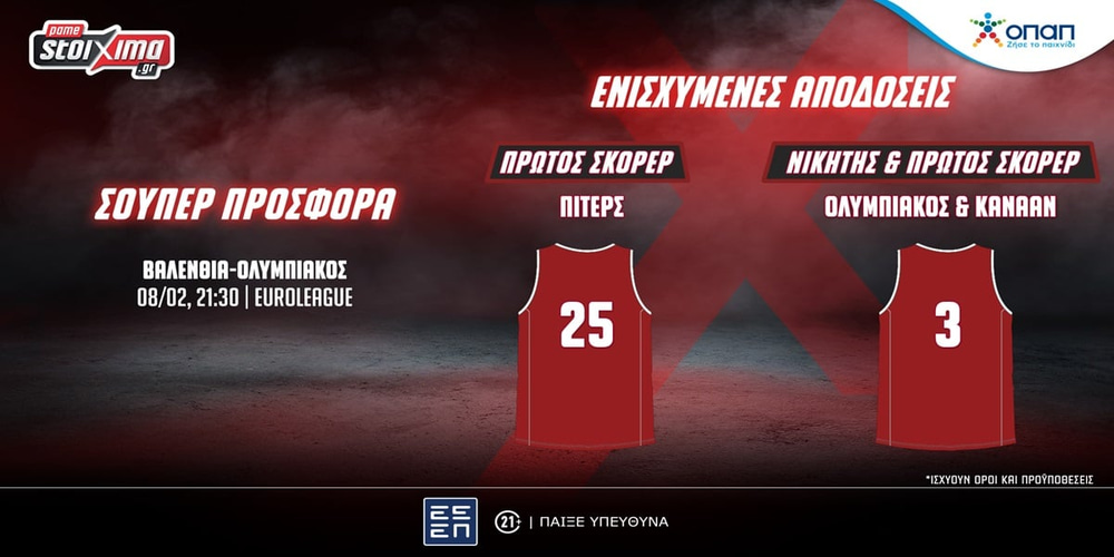 Επιπλέον, ενισχυμένες αποδόσεις σε περιμένουν για τα ματς της EuroLeague. Συγκεκριμένα: