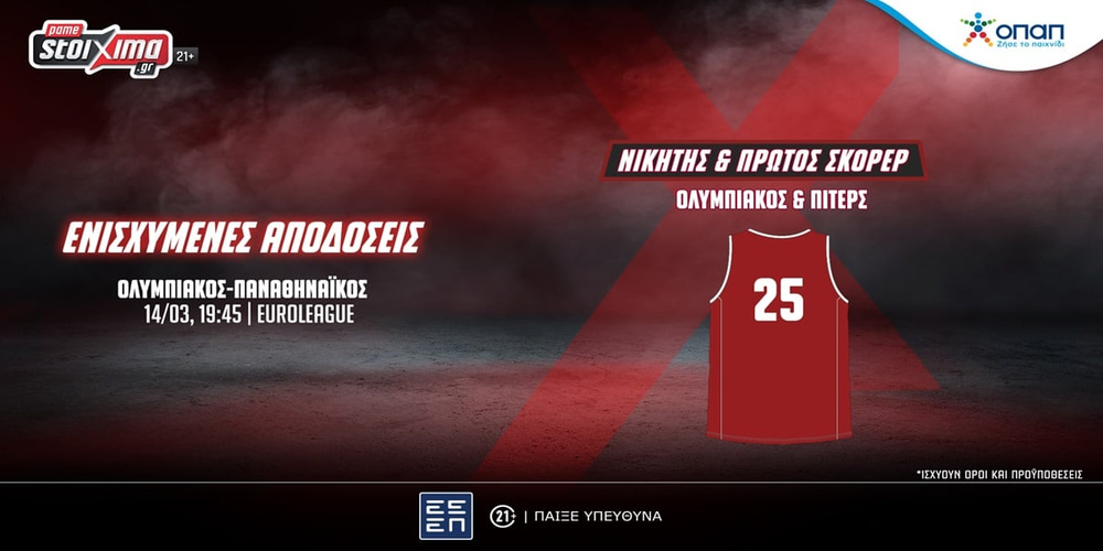 Το συναρπαστικό ντέρμπι μεταξύ Ολυμπιακού και Παναθηναϊκού στην EuroLeague σε περιμένει με ενισχυμένες αποδόσεις στο Pamestoixima.gr!