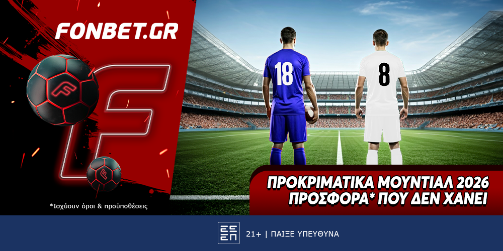 Μπορείτε κι εσείς να επωφεληθείτε από την προσφορά* της Fonbet στα Προκριματικά Μουντιάλ 2026. Μάλιστα, αφορά τόσο τα pregame στοιχήματα, όσο και αυτά στο live. Επίσης, υπάρχει κι άλλη προσφορά*, είναι για τους αγώνες στο NBA. Θα μπορέσεις να διεκδικήσεις την κορυφή απέναντι στους άλλους παίκτες; Μπαίνεις στη νέα πλατφόρμα της Fonbet, παίζεις και κερδίζεις μοναδικά έπαθλα*.