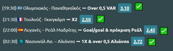 - το combo Χ2 με over 1,5 του ΠΑΟΚ στο Ηράκλειο, παρά τα όσα έγιναν από χθες με το αποτυχημένο αίτημα αναβολής (το οποίο έκρινα ως σωστό), η ενδεκάδα του μια χαρά είναι, άκρως ανταγωνιστική (1.81).