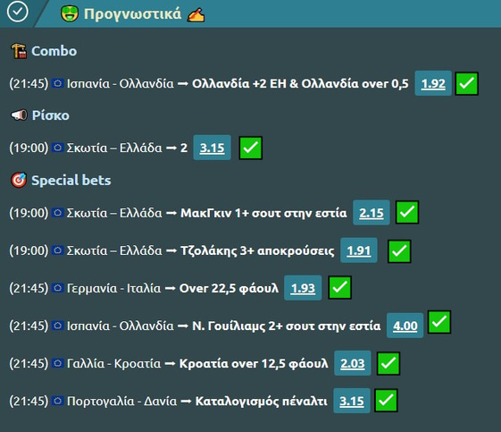 ΥΓ1. Βλέπω αλλά… Η διαλογή άφησε εκτός το dnb της Τιρόλ με την Γκράτσερ (2.15), το dnb της Χόλσταϊν Κίελ με τη Βέρντερ (2.44), το διπλό της Γιαγκελόνια με τη Λέχια Γκντανσκ (2.19) τον άσο της Ραπίντ Βουκουρεστίου με την Ουνιβερσιτάτεα Κραϊόβα (2.61) και την πρόκριση της Νότιγχαμ Φόρεστ με την Μπράιτον (2.52).