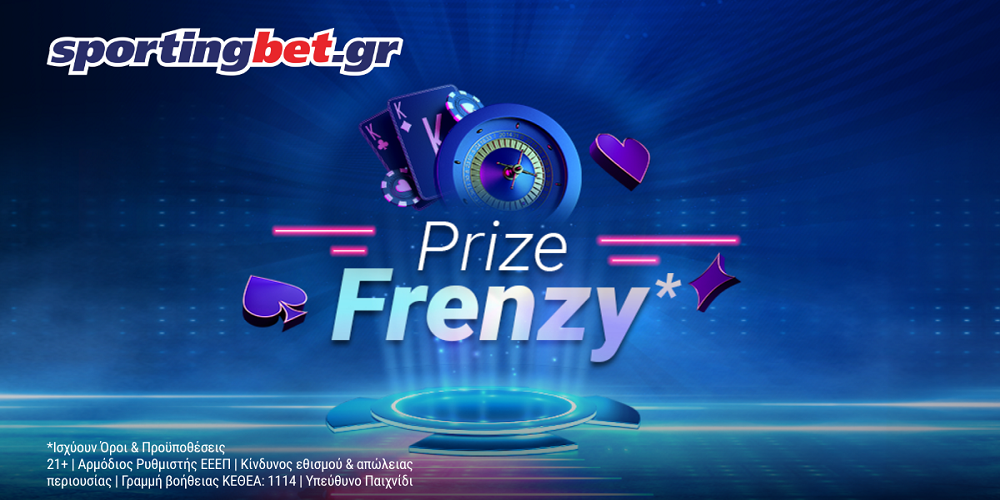Η διασκέδαση ξεκινάει κάθε Δευτέρα και συνεχίζεται όλη την εβδομάδα! Το Prize Frenzy* είναι ο νέος καθημερινός συνδυασμός προσφορών της Sportingbet, που δίνει τη δυνατότητα σε όλους τους εγγεγραμμένους χρήστες, να πάρουν μέρος και να κερδίσουν απίθανα έπαθλα*… κάθε μέρα, μέσα από δύο κατηγορίες!