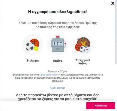 Σε αυτή την φόρμα θα πρέπει να γράψετε τα προσωπικά σας στοιχεία (Όνομα, Επώνυμο, διεύθυνση, ημερομηνία γέννησης). Θα πρέπει επίσης να δηλώσετε ένα username και ένα password που θα χρησιμοποιούνται για την είσοδο σας στην στοιχηματική. Έτσι γίνεται η ολοκλήρωση εγγραφής.